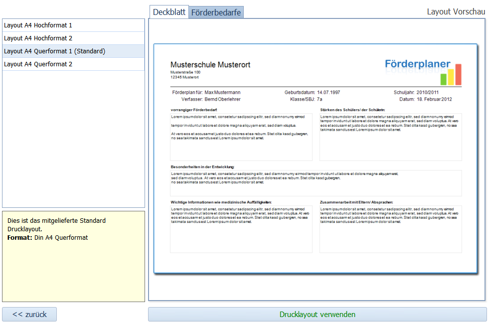 Förderplan drucken